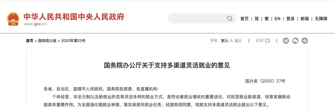 國務(wù)院:支持創(chuàng)造更多靈活就業(yè)機會
